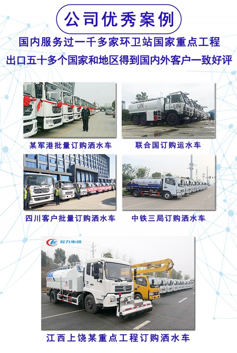 灑水車是湖北程力汽車公司的優勢產品!專業制造各種灑水車二十多年,技術成熟,質量優異,市場占有率大。常年備有大量現車,可隨時發車,是全國最大的灑水車生產銷售基地。
