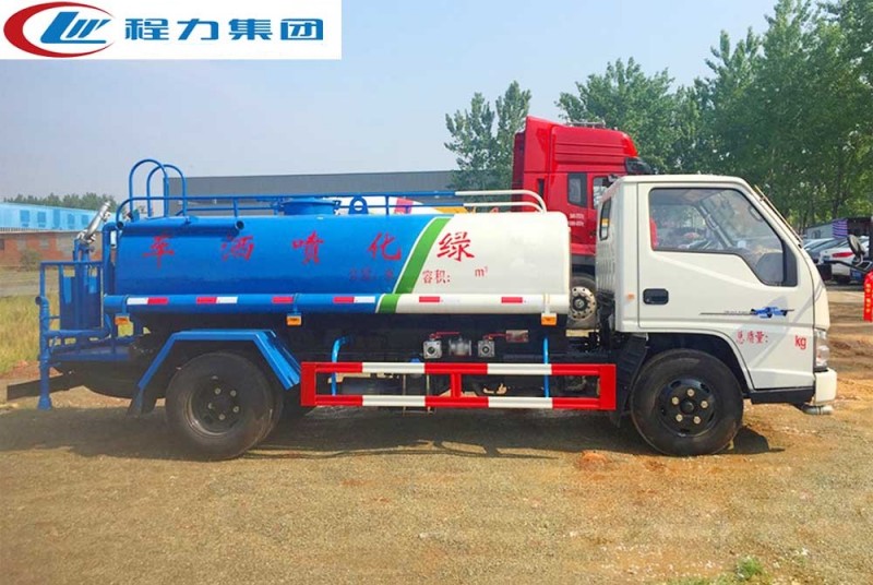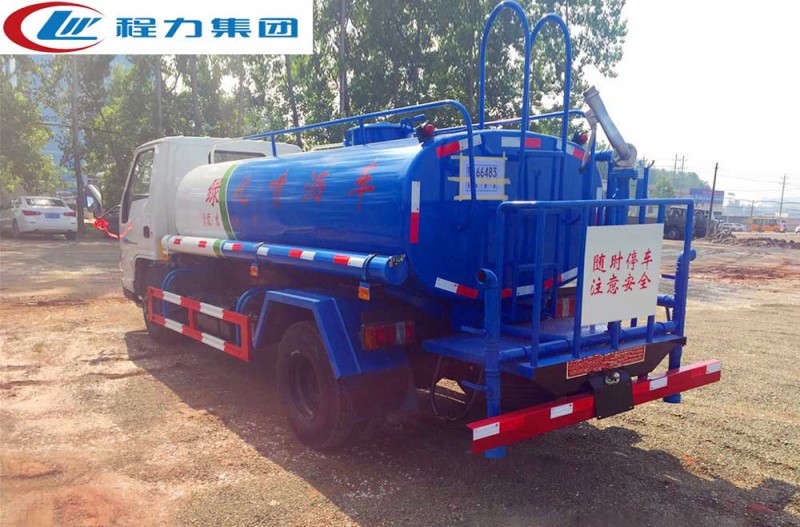 罐體有效容積4.5立方,罐體采用國標Q235碳鋼,罐體厚度3mm,自吸自排水泵,帶前沖裝置,后灑裝置,左右側噴裝置,尾部帶有安全操作平臺,帶消防接口,自流口,兩根輸水管,尾部綠化高炮,綠化高炮可調節直沖,大雨,中雨,毛毛雨霧,可以連續調節,360度旋轉;