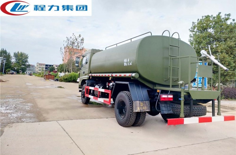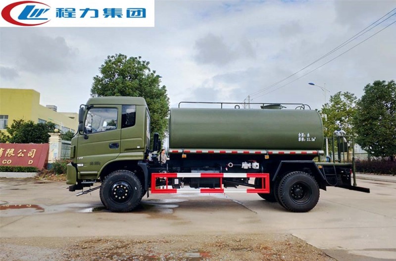 東風四驅灑水車是全國唯一可以上牌的四驅灑水車,采用4x4驅動系統,即相比普通灑水車后輪驅動,東風越野灑水車前后輪都可為驅動輪,全時四驅的模式,使其能沙漠、雪地、森林、沼澤等地形高效工作。 實際上,東風四驅灑水車正是為了滿足市場需求而參考軍車結構設計制造,即軍車民用,整車配備東風153(CPB12)駕駛室(新款為D913豪華仿天錦),康明斯ISB190 50國五發動機,六檔變速箱(具有高低檔,儀表盤上顯示為兔子烏龜燈),軸距4500mm,前橋3.8噸,后橋10噸,均為東風商橋車橋,雙層大梁設計,帶原廠ABS,選裝空調。