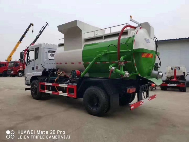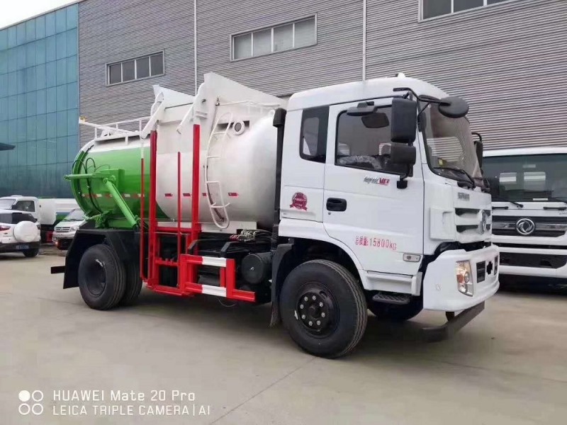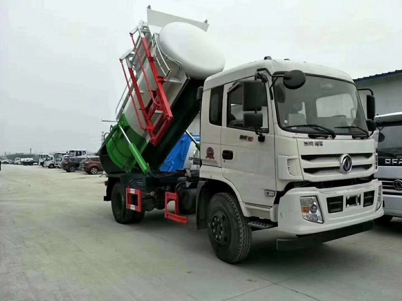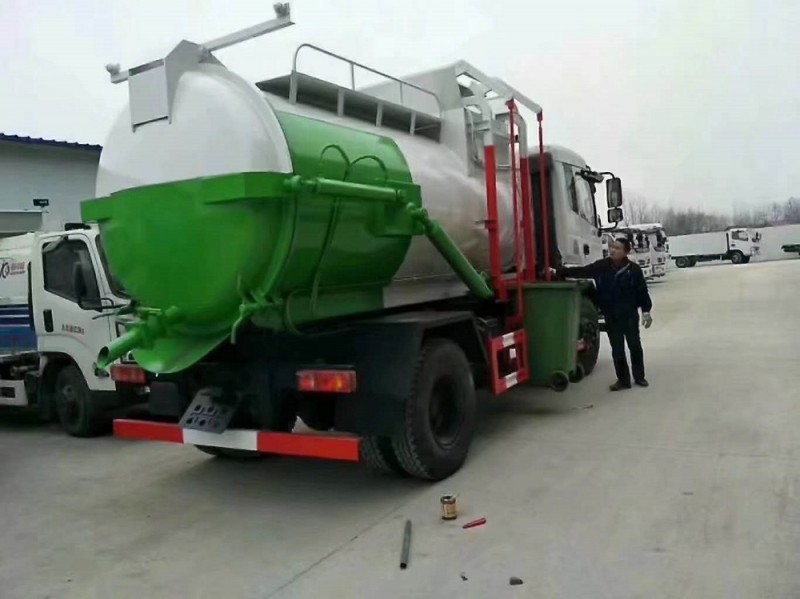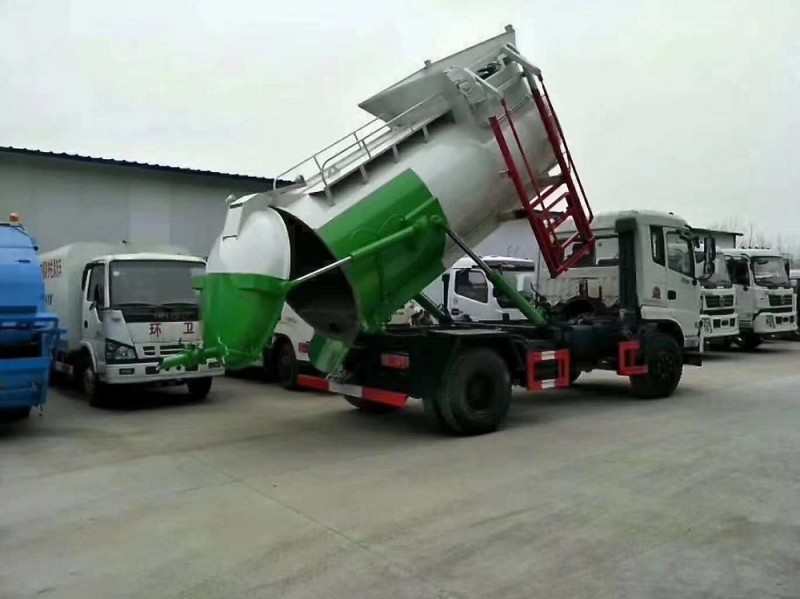 圓形碳鋼罐體,罐體厚度5mm,拉桿提升機帶上蓋聯(lián)動;后蓋液壓開啟;罐體舉升自卸。選裝內(nèi)軒推鏟卸料,帶渣液分離功能。餐廚垃圾車可分罐式和廂式。