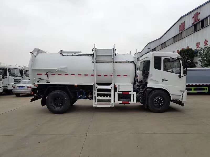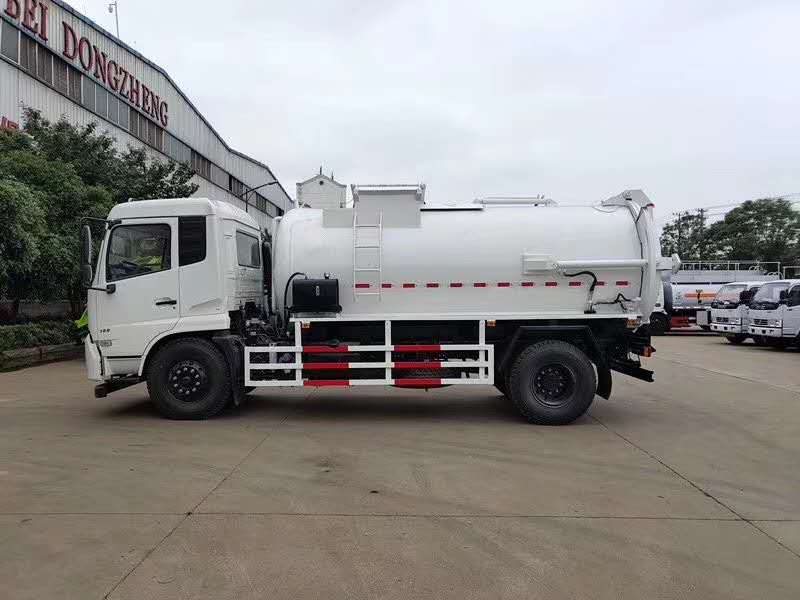 東風(fēng)天錦餐廚垃圾車,搭配康明斯180馬力國五發(fā)動機(jī),東風(fēng)六檔箱,9.00R20鋼絲胎,軸距4500mm,原廠空調(diào),正規(guī)東風(fēng)GB7258-2017新規(guī)底盤;上裝采用Q345高強(qiáng)度錳鋼板或304不銹鋼罐體制作,罐體容積:10立方米,大流量液壓泵,大流量手自一體多路換向閥,可編程PLC電控系統(tǒng)帶無線遙控器操作,污水廂,帶壓縮擠壓功能,帶清洗泵自潔系統(tǒng),后蓋液壓開啟,后蓋帶液壓鎖緊并具有防誤操作。